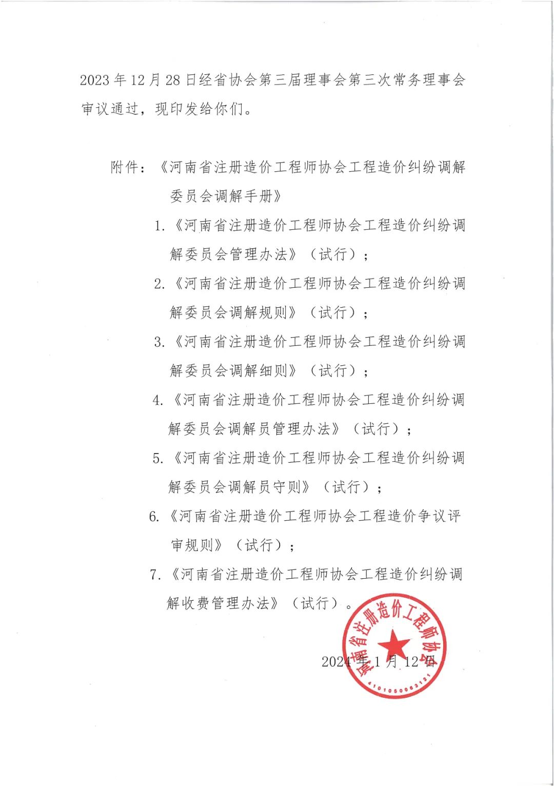 关于印发《河南省注册造价工程师协会工程造价纠纷调解委员会调解手册》的通知